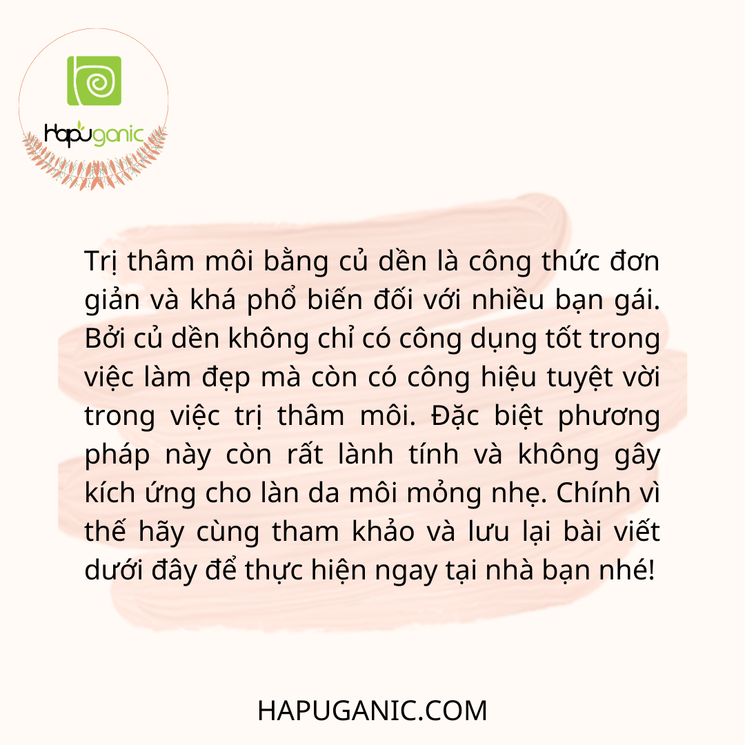 MẶT NẠ DƯỠNG MÔI AN TOÀN TẠI NHÀ TỪ BỘT CỦ DỀN HAPU ORGAIC